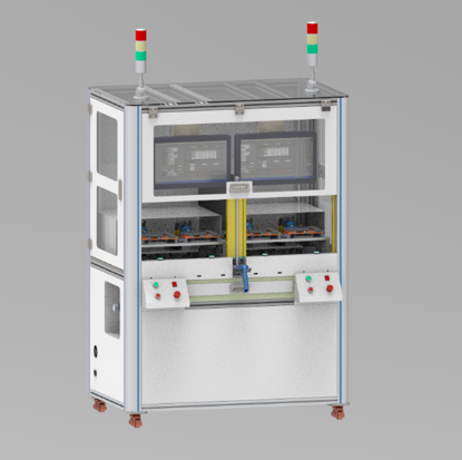 该设备应用于折叠手机转轴X方向左右两端或Y方向,在规定力的情况下虚位的变化测试,设备搭配两套(X向Y向)推力装置,可分别进行测试X方向两边、Y方向的的虚位测试。